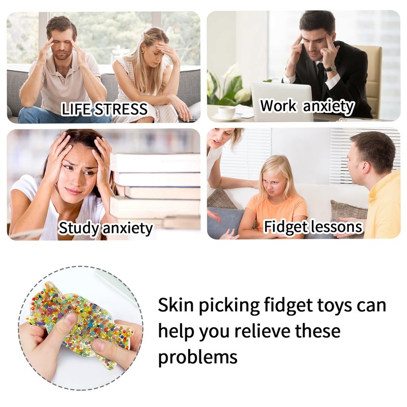 - 【Trichotillomania Fidget Toy】 Our Skin Picking Fidget Toy is specifically designed to cater to individuals with trichotillomania, featuring unique textures and tactile characteristics that provide sensory stimulation and satisfy the sensory needs commonly associated with skin picking behavior. Unlike traditional stress balls, our toy offers a more comfortable alternative for those who dislike the sticky feel