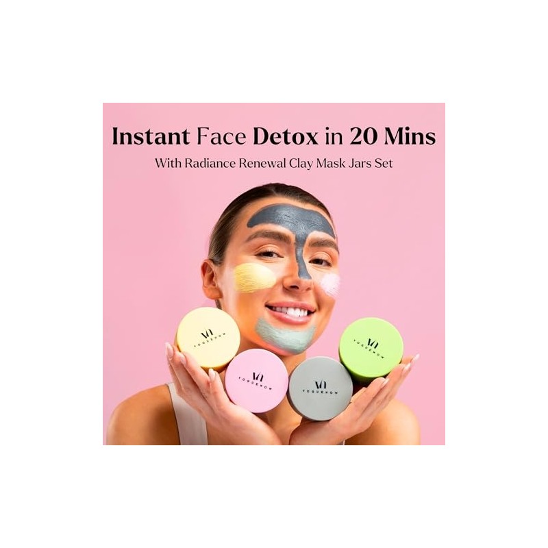 - Clay Mask Set for Ultimate Detoxification - Pamper your skin with the Premium Clay Mask Set, featuring four 100g jars with unique formulations like Vitamin C-Turmeric for brightening, Rose Pink Clay for hydration, Green Tea for detoxification, and Dead Sea Mud for deep cleansing. Infused with ingredients like Shea Butter, Aloe Vera, and Hyaluronic Acid, these masks gently detoxify and enhance your skin’s natural glow while being gentle on sensitive skin.