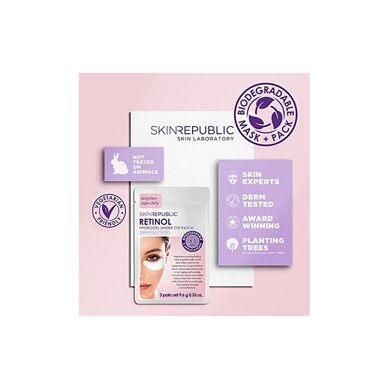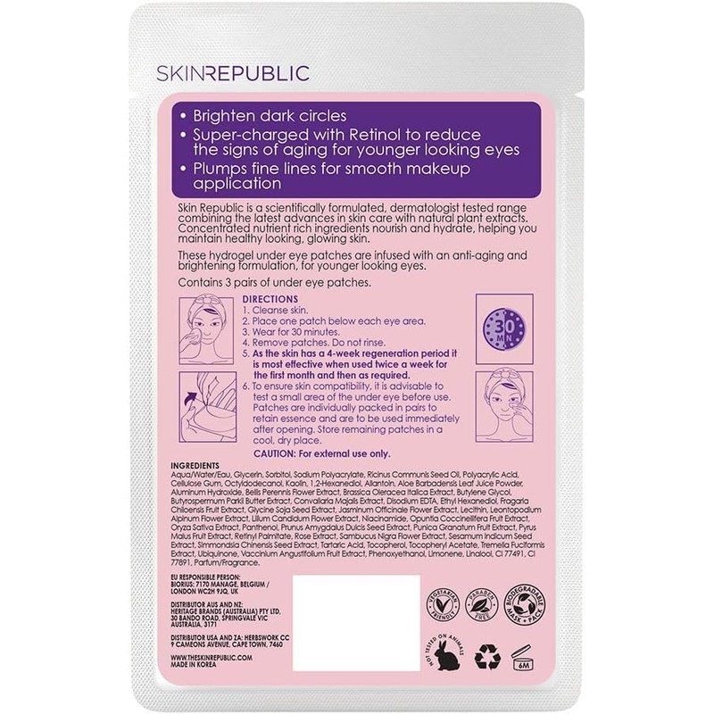 Skin Republic Retinol Infused Hydrogel Under Eye Patch | Reduces Deep Wrinkles & Undereye lines | Reduces Dark Circles (Pack of 3 Pairs)