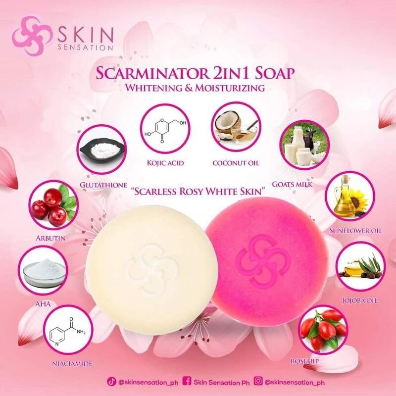 Skin Sensation ScarMinator 2 In 1 Soap Whitening & Moisturizing, 2 X 100g Bars
