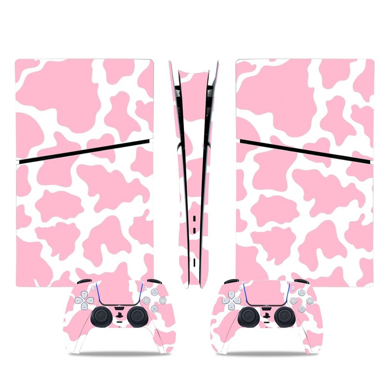 Skin Sticker for PS5 Slim Digital, Full Set Protective Vinyl Decal Cover Wrap for Game Console and Controller (White Pink)