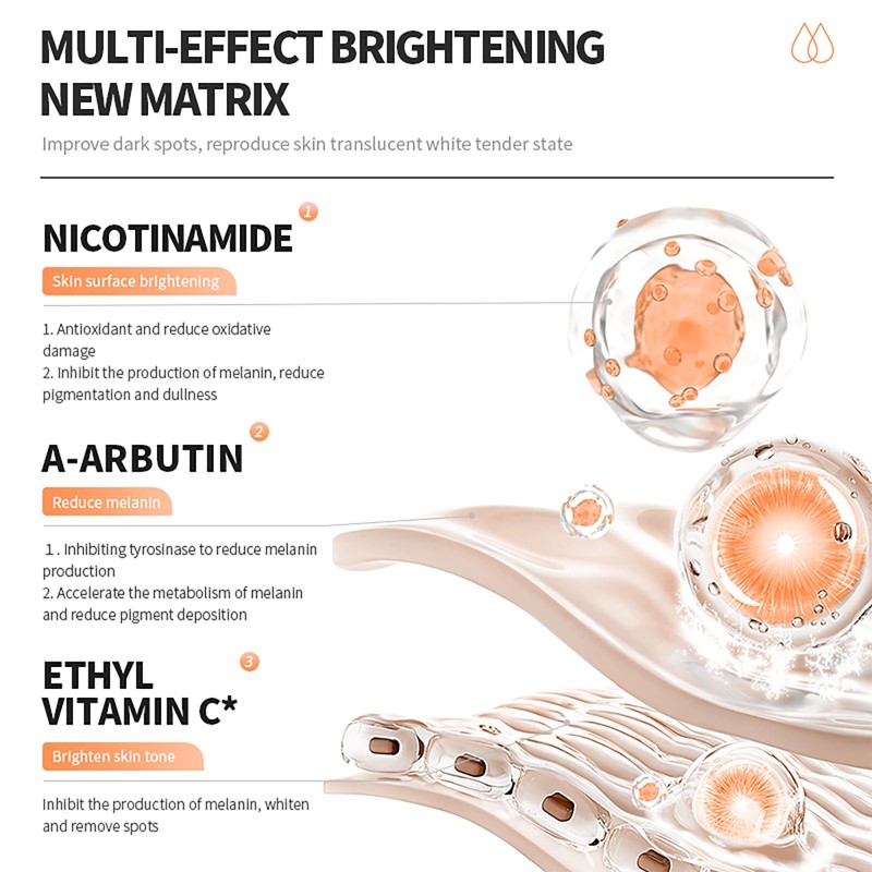• α-アルブチン&ナイアシンアミド配合で肌を整える: α-アルブチンとナイアシンアミド(ビタミンB3)を配合したシートマスクが、乾燥によるくすみや肌のキメを整え、透明感のあるなめらかな肌印象へ導きます。