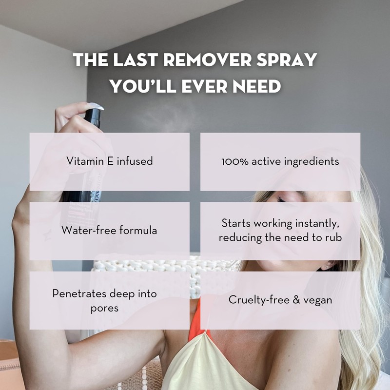 • Gentle & Effective Makeup Remover. Spray starts working immediately. The gentle formula eliminates dirt, oil, stubborn makeup & impurities from the skin's surface.
