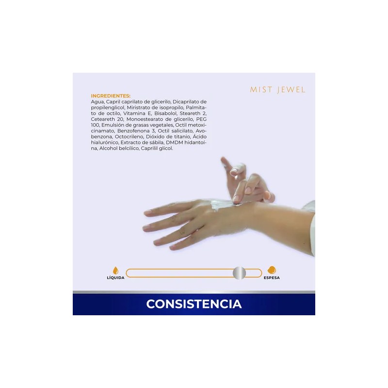 Mist Jewel - Protector Solar con Acido Hialurónico FPS 50+ Protección Total y Máxima Hidratación Facial