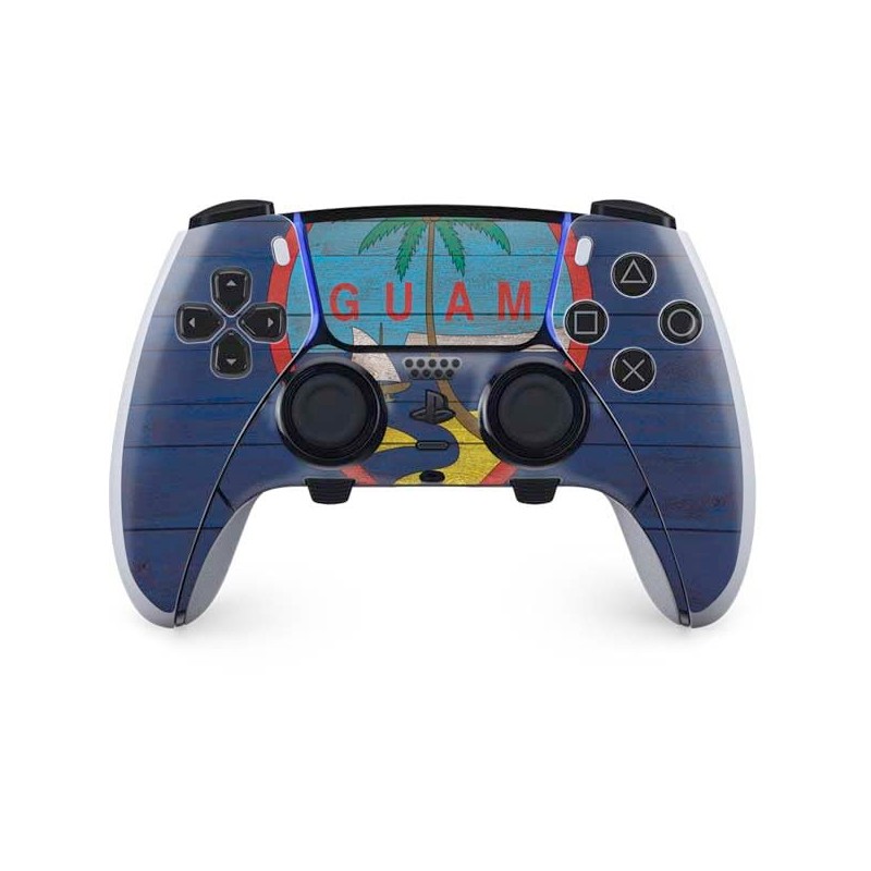 Skinit Decal Gaming Skin Compatible with PS5 DualSense Edge Pro Controller - Guam Flag Dark Wood Design