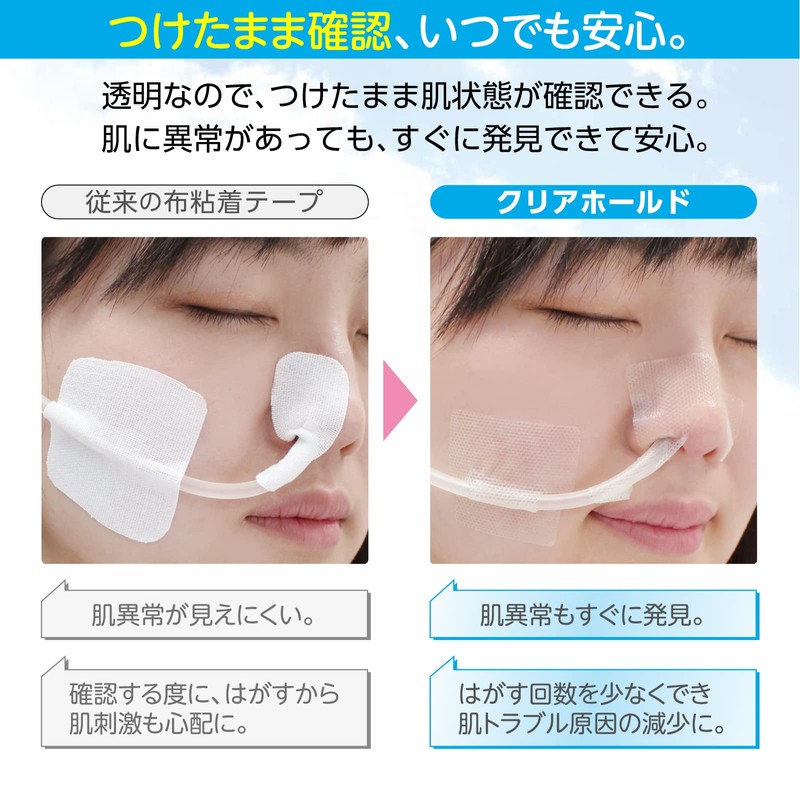 - [Lighten Your Feeling] This tape is dedicated to securing the nose tube. This tape is made of transparent ultra-thin film that is comfortable to look and feel and light