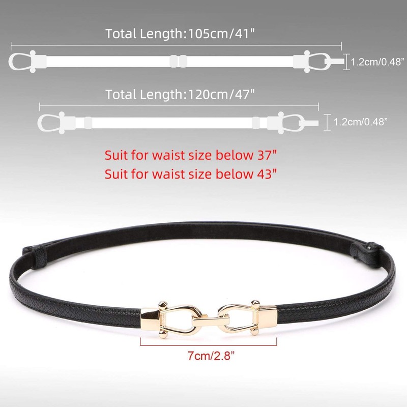 - ▶SIZE INFO--- This leather skinny belt is fully adjustable.Belt total length:97cm/38.8",perfect for waist size below 37",belt width 0.48";Buckle length: 2.8",buckle width: 0.72".(Consider about 2cm error)