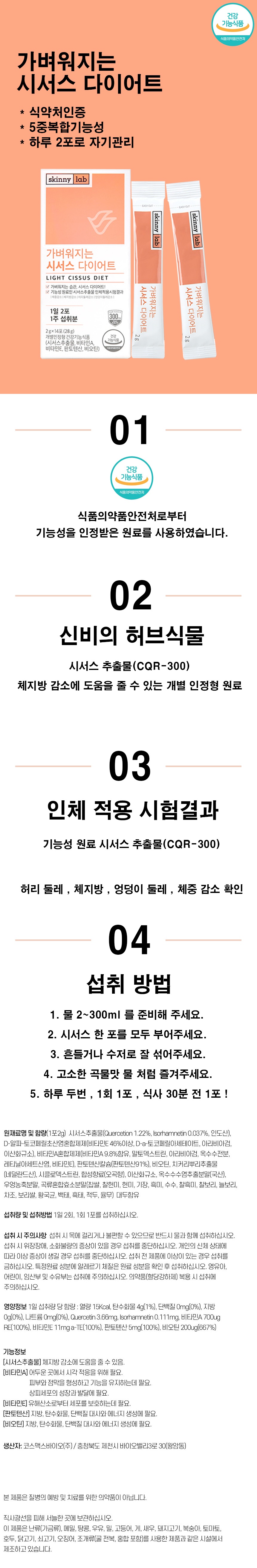 - 섭취량, 섭취방법 및 섭취 시 주의사항 및 부작용 가능성: 상세설명참조