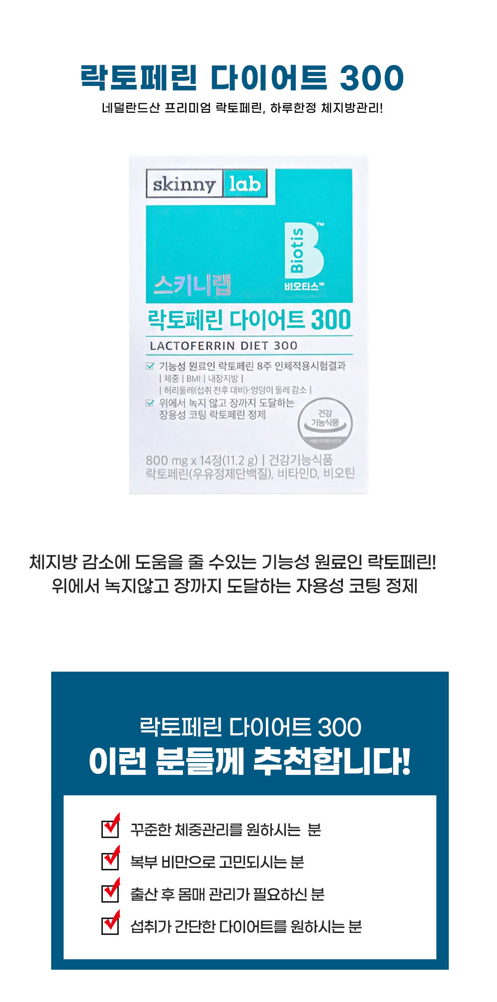 Skinny Lab Lactoferrin Diet 300 Enteric Coated Lactoferrin Diet Supplement Colostrum Protein Biotin Vitamin D / 스키니랩 락토페린 다이어트300 장용성락토페린 다어어트보조제 초유 단백질 비오틴 비타민D