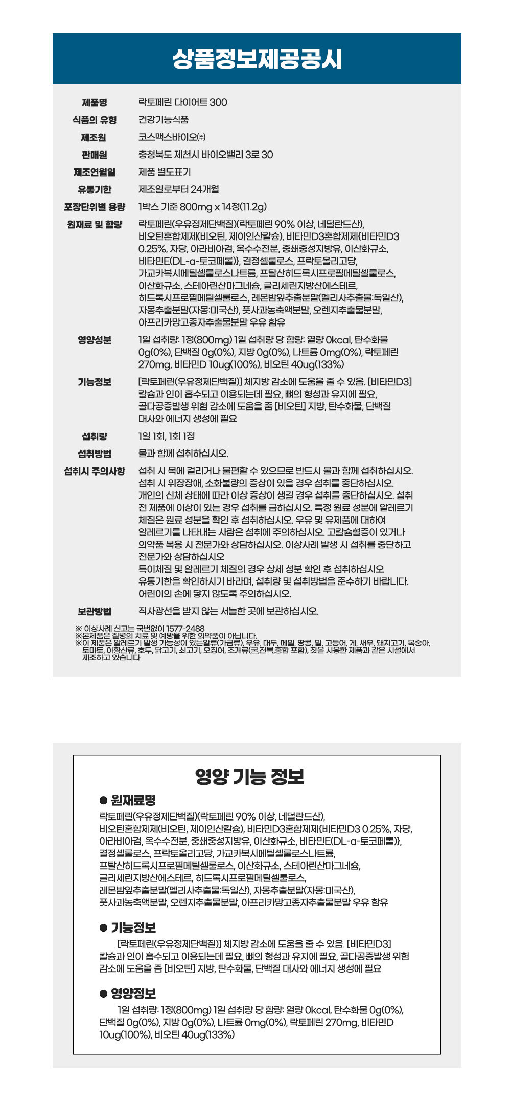 - 「건강기능식품에 관한 법률」에 따른 유전자변형건강기능식품 표시: 상품상세설명 참조