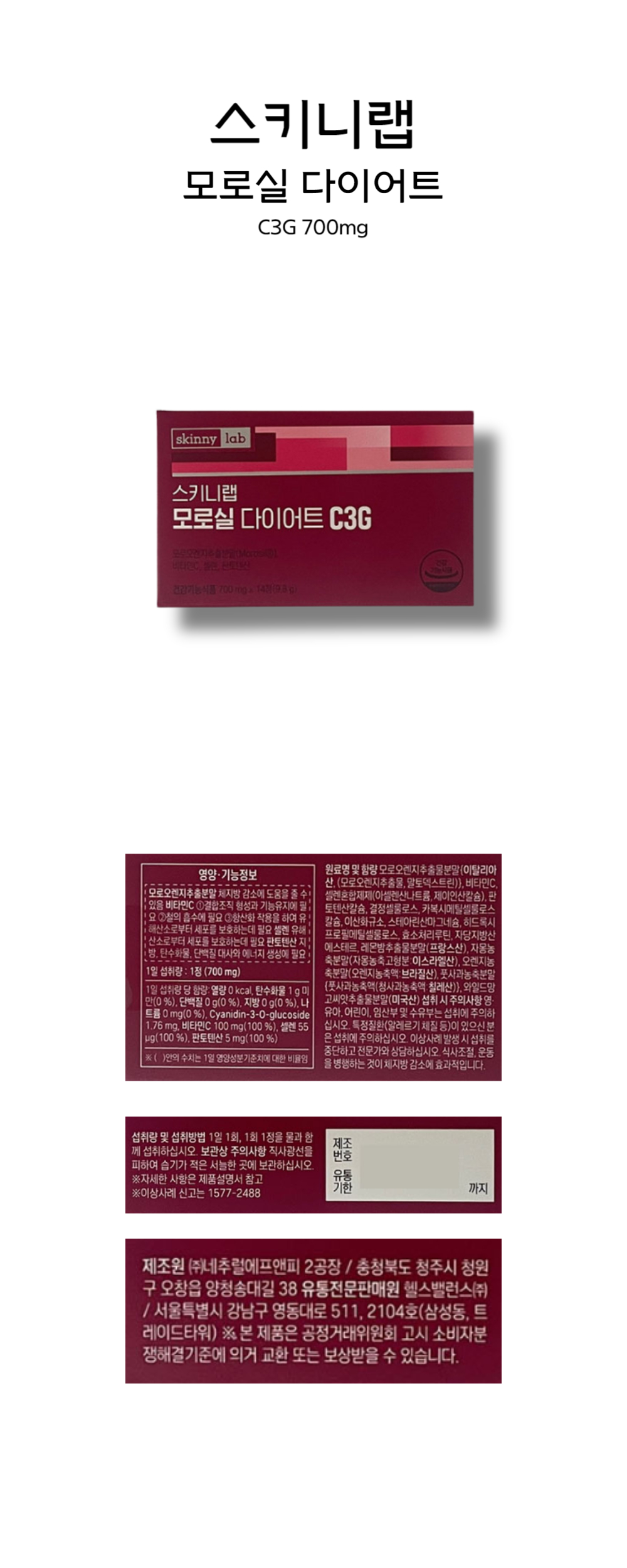 Skinny Lab Morosil Diet C3G 700mg 4 boxes x 2 months / 스키니랩 모로실 다이어트C3G 700mg 4박스x2개월
