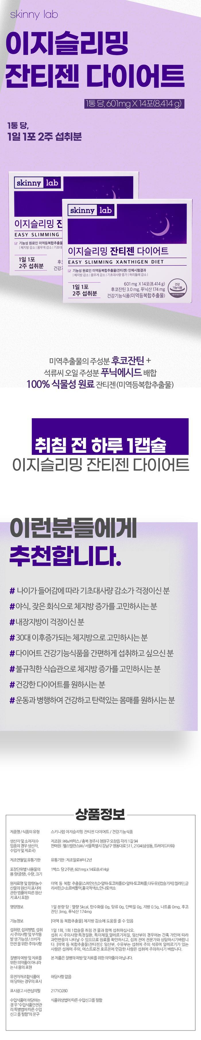 [Skinny Lab] Skinny Lab Easy Slimming Xanthigen Diet 601mg x 28 packets, 4 weeks’ worth / [스키니랩] 스키니랩 이지슬리밍 잔티젠 다이어트 601mg x 28포 4주분