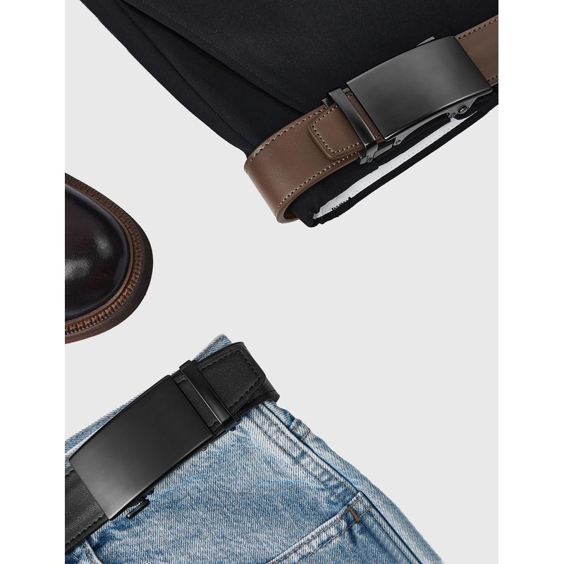 SKiporty Mens Belt Leather with Automatic Buckle Adjustable Ratchet Belts for Men Dress Casual Jeans Trim to Fit,32" to 38",F-black