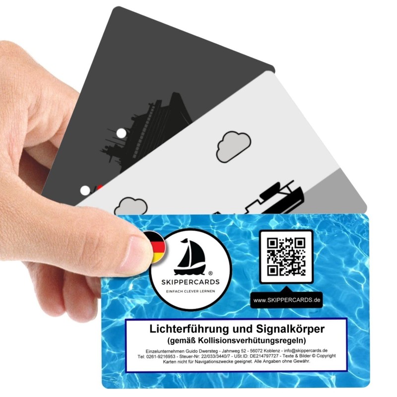SKIPPERCARDS Light guide and signal body, flashcards according to collision prevention rules, KVR, sailing, sports boat, water sports