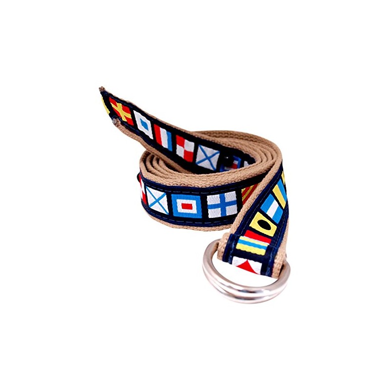 Skippers D-Ring Nautical Code Flags Belt, Khaki Webbing, Silver D-Ring (L 52" Long (Pant Waist 38-40))