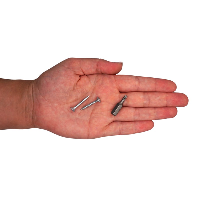- Packed: 300 wood screws. Size: 3.5 x 25 mm. Torx head. One suitable screwdriver bit is included.
