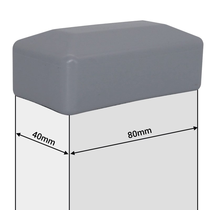 • These plastic caps are suitable for covering the 40 x 80 mm fence posts. Fence post caps are robust, UV resistant and cold resistant.