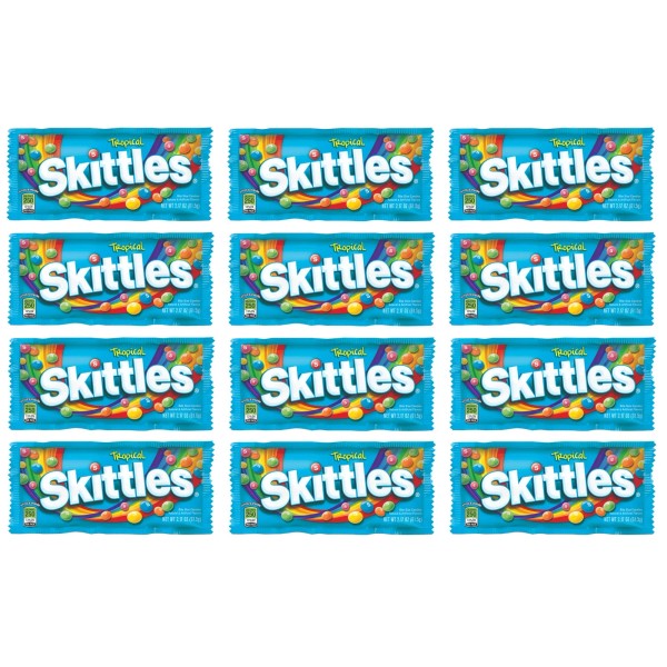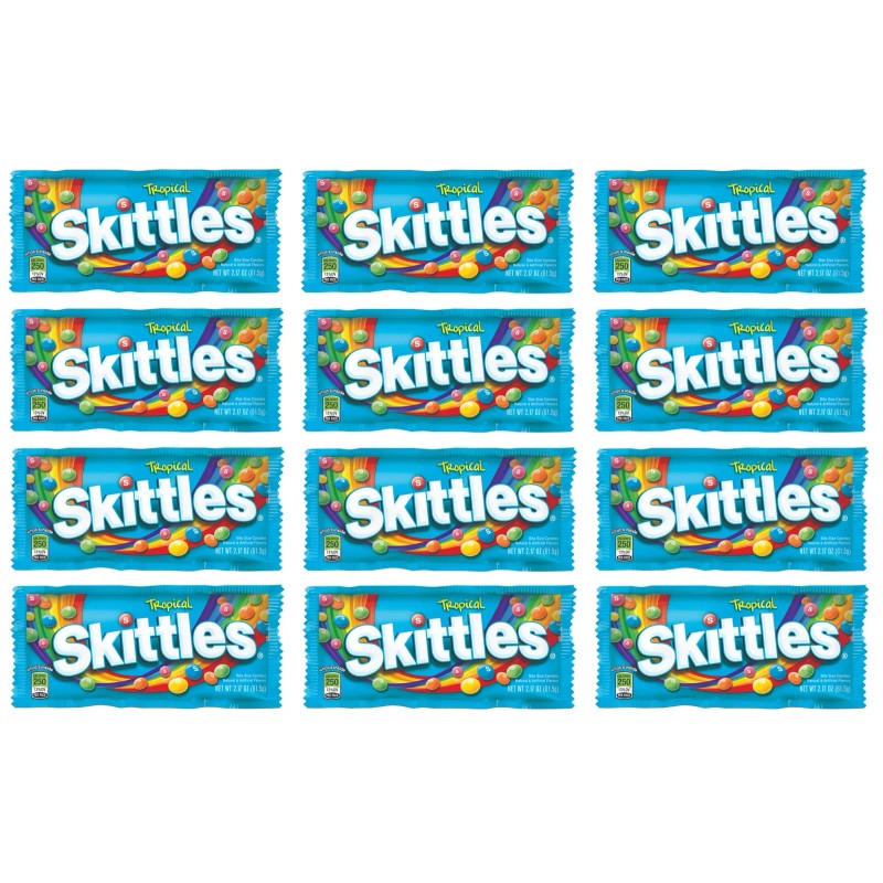 SKITTLES - Original, Wild Berry, Tropical, Smoothies, Sour, Brightside, All Lime - Full Size, Bite Size Candy, Individual Packs - Great For Holidays, Parties, Gifts & More ! (Tropical - 2.17 Ounce, 12 Count)