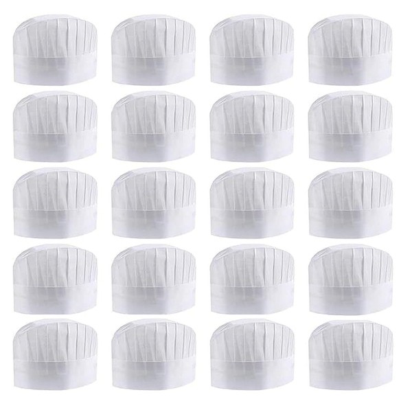 SKJAXF 20 Pcs Chefs Hat, Chef Hat, Chef Hats, Chefs Hats for Adults, Chef Hats for Men, Suitable for Home Kitchens, Food Occasions, Courses and Parties, Restaurants, Cooking. White