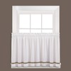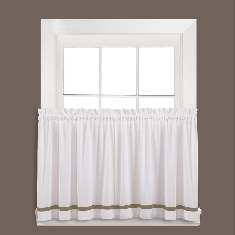 A clean, fresh look to brighten any room. A contrast color traces the naturally drapey fabric as it cascades across your window frame. Decorative bows permanently tack the fabric in place. Easy care polyester. Available in berry, sage, blue, clove, taupe, and black.