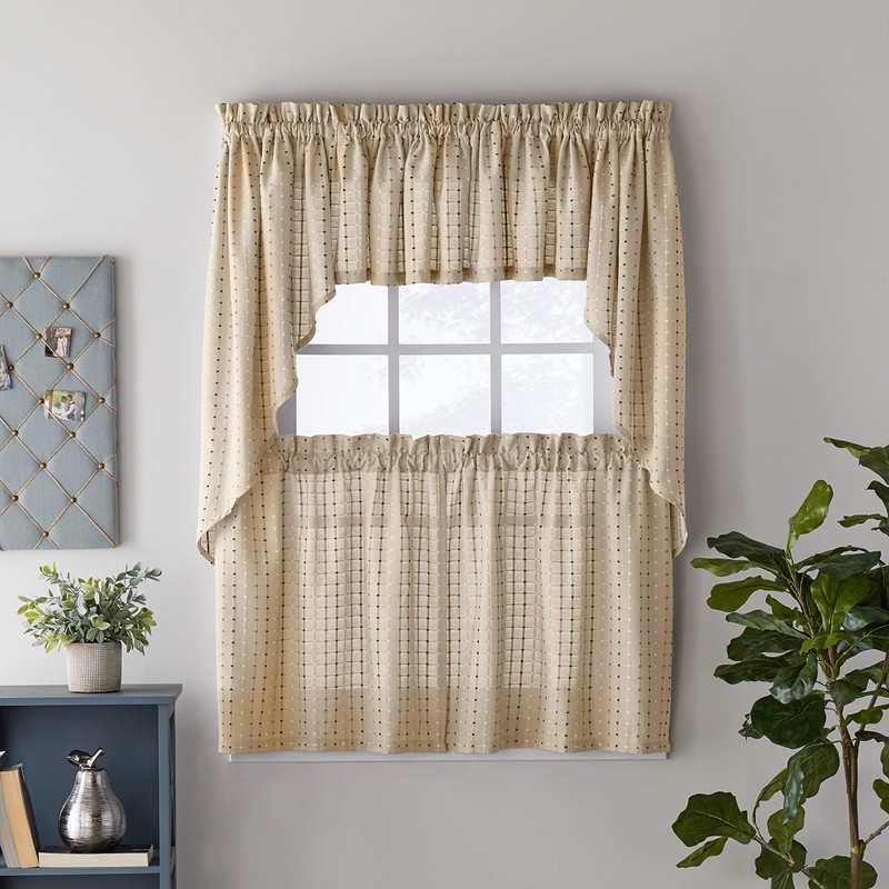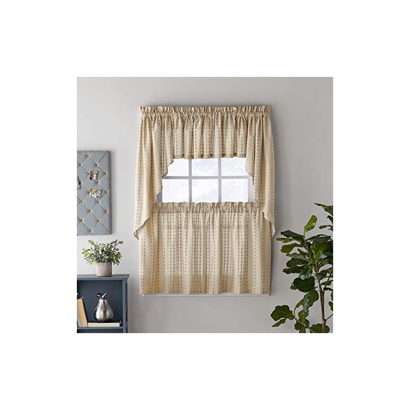 - Yarn dyed woven versatile tiers can be paired with the matching valance