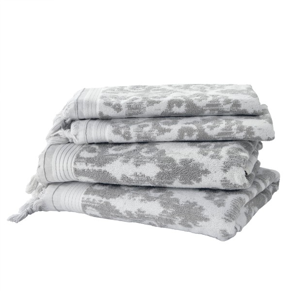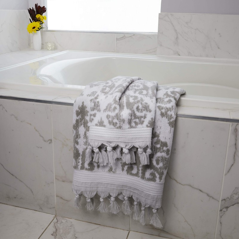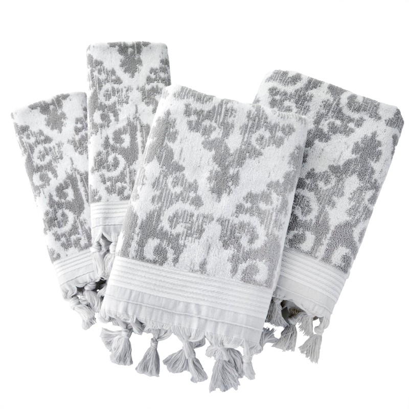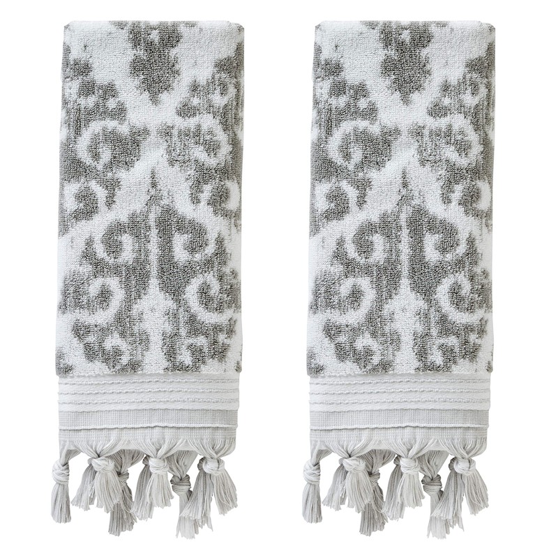 SKL Home Mirage Fringe 2 Bath, 2 Hand Towel Set, Gray