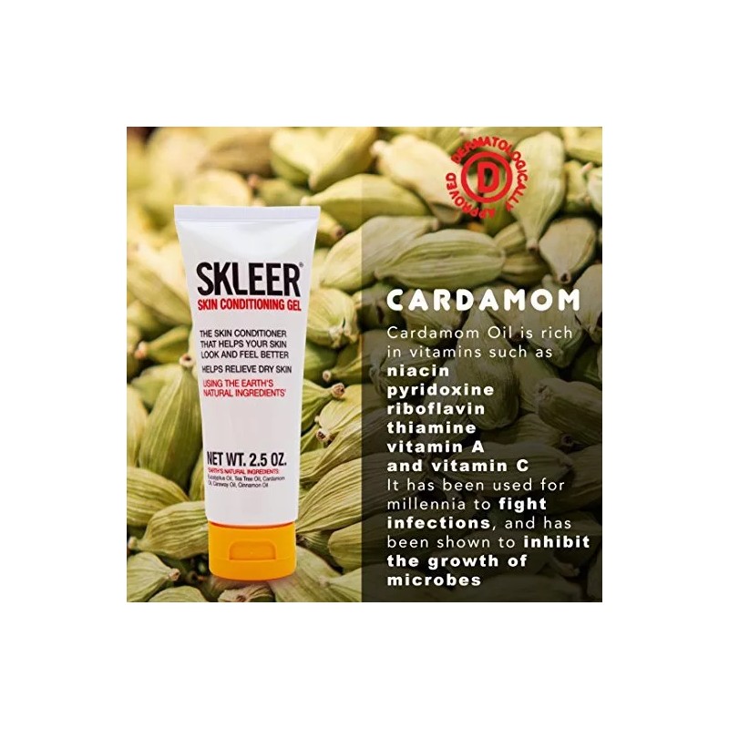 Skleer: Made in South Africa. Works Magic on Skin: Acne, Scars, Rashes, Redness, Itchy, Mosquito, Flea and Chigger Bites, Bee Stings or Dry Skin, Burns, Scrapes, Dark Spots, made from Locally Harvested all natural Tea Tree, Eucalyptus,Cardamom, Cinnamon & Carraway oils.