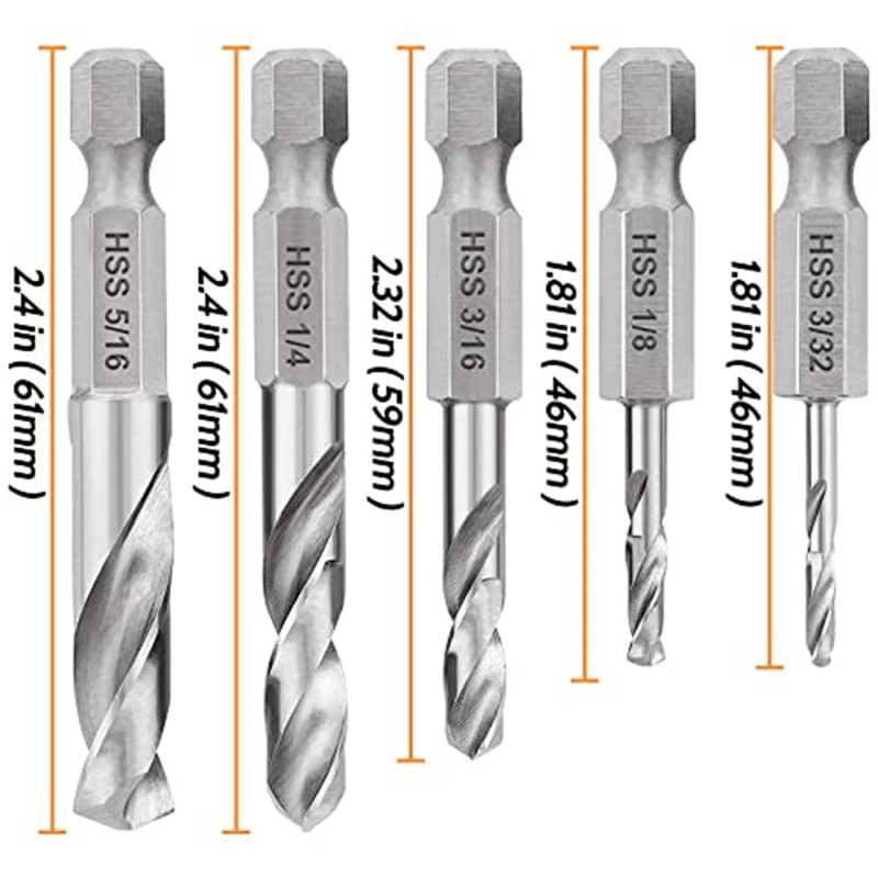 - Quick change: The short drill bits for metal are suitable for side milling, end milling, finishing work, etc. The drill set contains 5 pieces of drill bits in 5 different sizes to meet your requirements: 3/32, 1/8, 3/16, 1/4, 5/16.