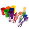 Brightly colored fine motor tools scissor with clear tops help children develop observation skills as they improve their fine motor coordination and finger dexterity. 6 Rainbow scoops allow for sharing and collaborative play in both home and school or daycare setting. The educational manipulative works both indoors for sorting activities and color matching and outdoors for exploration and bug catching.