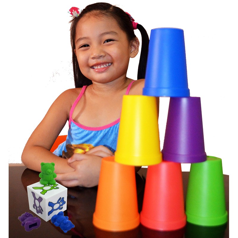 **Stumped for best toys for a 1 year old, or even a 2 or 3 year old boy or girl to give as a gift? The cheerful rainbow colors: red, yellow, orange, green, blue, and purple are child -approved making it easy to teach sorting, a foundational math skill for toddlers and preschoolers. Both parents and kids will love this! ** A great fine motor skills development toy for 2 years olds, 3 years olds, autistic kids and boys and girls alike. This educational math games toy, includes sorting and counting activities for toddlers and preschoolers which will help to develop those cognitive muscles. This sorting set makes for a great kids math games for toddlers, preschool and kindergarten children. Use it with our dice, bear train extension kit or with number cards. Can also be used as bath toys for bath time! Both the sorting cups and tongs can be used for Montessori, pre-math skills toys and as occupational therapy toys instead of tweezers. They make for one amazing addition to your childs learning toy collection. Kids will become masters at this kids color sorting activity as well as mathematics. Watch as they grow, learn and play at the same time. Includes: -6 Plastic Matching Cups (3.5in x 3 in) -1 storage container with lid (7inx3in) Color Dice for toddler games 6 scoop s 7in)