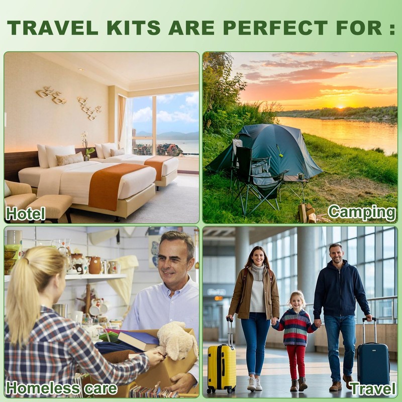 - 3.Widely Applied: homeless supplies is suitable for most people to use, which can be applied homeless supplies and hotels,Women's shelter,Church Charity Activities,nursing home residents,parties,weddings,camping,Christmas personal hygiene packages,air bnb. manual Toothbrushes , Travel Size Body Wash and Shampoo Bulk can help everyone with oral hygiene, hair care, and body cleaning.Laundry detergent travel is suitable for all types of clothing, with efficient cleaning and stain removal factors that can effectively remove stains