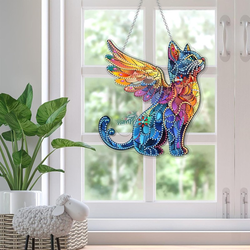 SKRYUIE Hanging Diamond Art Kits for Adults Pendant Cat, Special Shaped Crystal DIY Diamond Painting Kit, Acrylic Board Wreath Pendants Double Sided, Home Decor 7.48 x 7.32 Inch x12