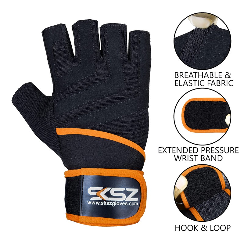 SKSZ Weight Lifting Gloves with Wrist Wrap |Gym Gloves Men with Silicon Padding| Lifting Gloves| Weightlifting Gloves for Men’s| Fingerless Work Gloves| Weight Gloves