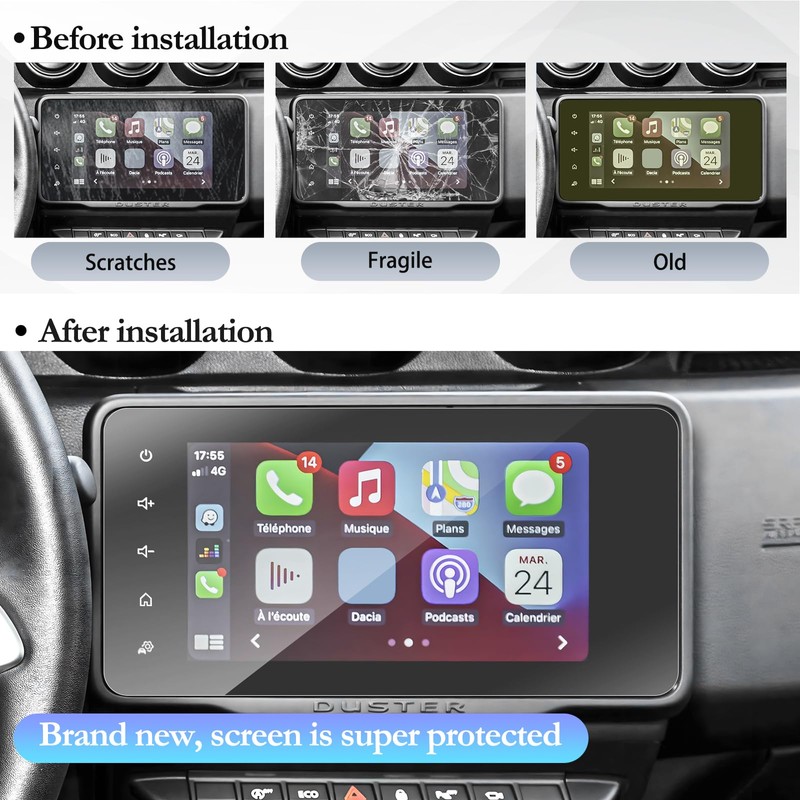 Diese Displayschutzfolie ist mit originalen Fahrzeugdaten getestet und passt zu 100% perfekt fรผr Ihren Renault Duster Dacia / Duster Extreme 2022 2023 2024.