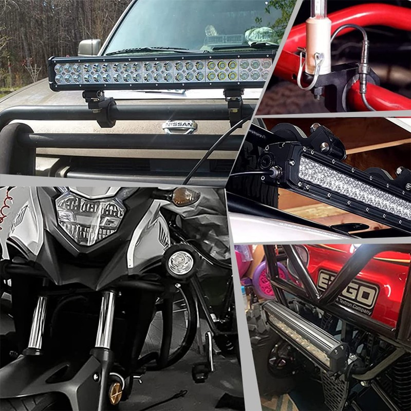 - Sheet metal fittings for attaching LED work lights, bar lights, fog lights, search lights, etc. to pipes on motorcycles bumpers, etc