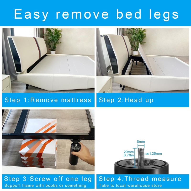 - The M8 thread bed legs found out not fit many adjustable bed frame, please refer to informations left by other buyers, or contact us for advise.