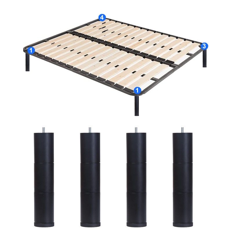 2.The design is a cost effective way for maintaining the life of your expensive bedbase / Wooden Slat / Mattress Foundation / Platform Bed Frame / Box Spring .The bed frame support legs will hold and evenly distribute the weight of your heavy mattress efficiently protecting your bed and mattress from sagging and damage .Saving you money on bed repairs and mattress replacements.