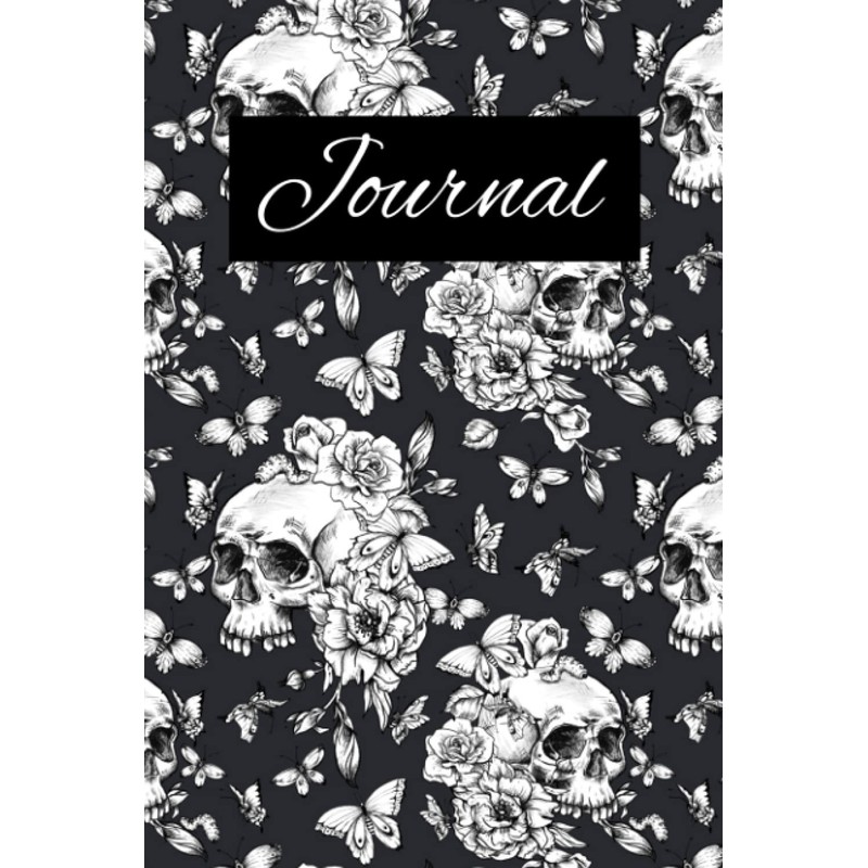 Skull and Roses Journal Goth Notebook, Lined 6x9 inch 192 page perfect bound Glossy Soft