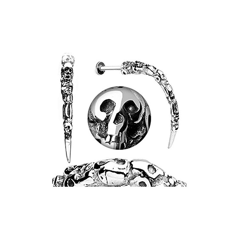 • Our aesthetically captivating 316L Stainless Steel Skull Carved Slim Claw Labret is brain-bendingly beautiful, featuring an assortment of intricate skull and skeleton pieces. It's 14GA (1.6mm) with a length of 3/8" (10mm). Make a statement!