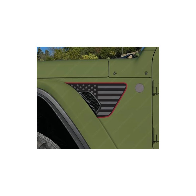 Skull Daddy Graphics Standard Fender Vent Flags Decals Compatible with Jeep Wrangler Gladiator Rubicon Mojave 392 JL JT 2018-2024 (3 Color Matte Black/Dark Grey/Rubi Red)