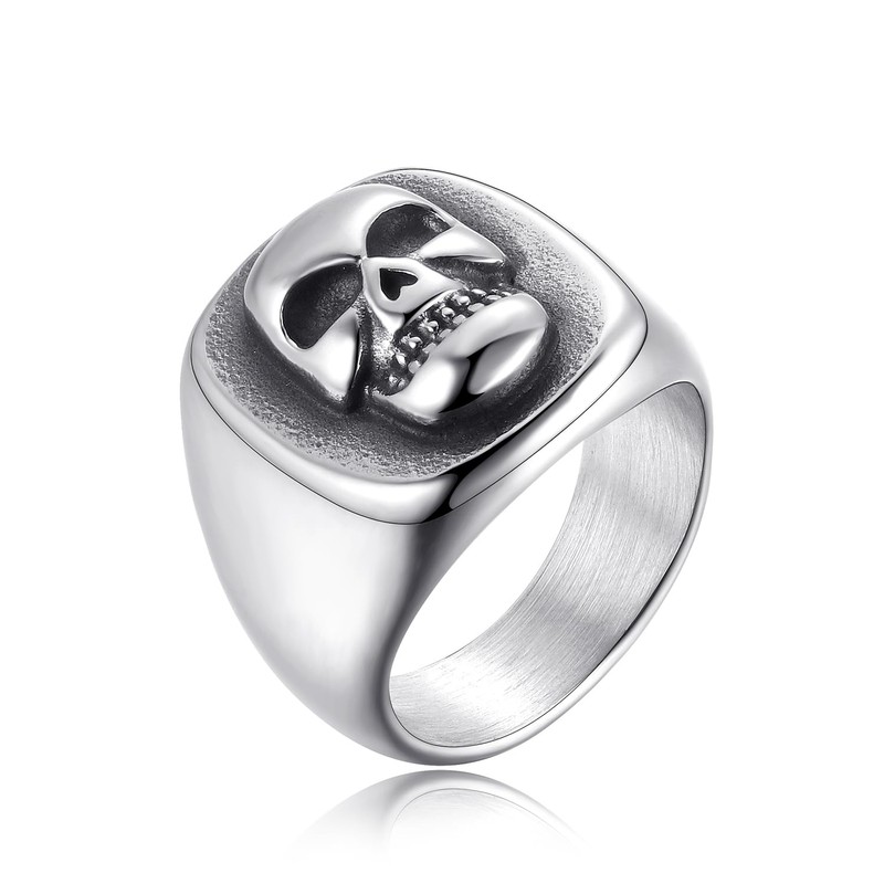 Skull Signet Ring for Men Stainless Steel Gothic Punk Statement Ring Size 9
