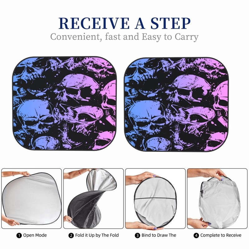 Skull Windshield Sun Shade Foldable 2pcs Car Front Window Sunshade Blocks UV Rays Portable Sun Visor Sun Shield Car Interior Accessiores Universal