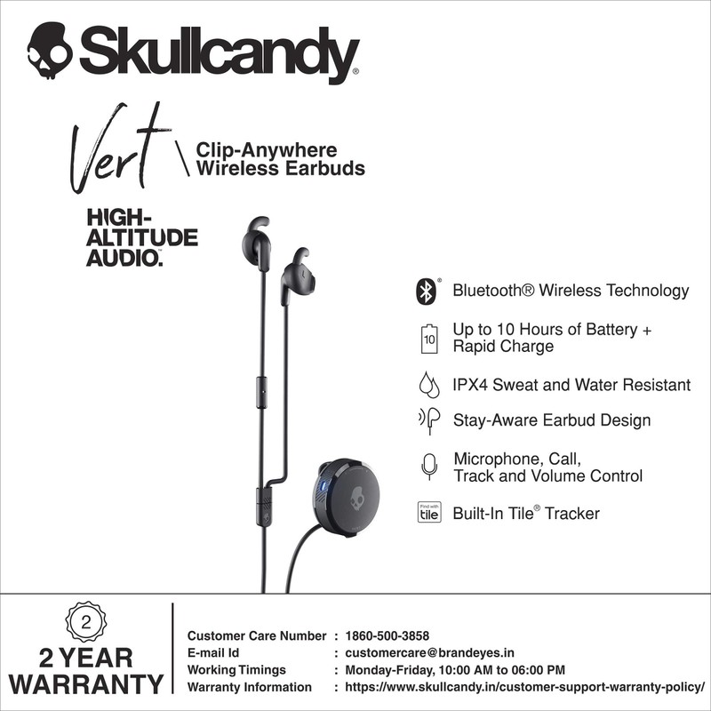 Skullcandy Audifonos Inalámbrico Vert Wireless IN-Ear W/Mic IN Ear, Negro, Talla Única