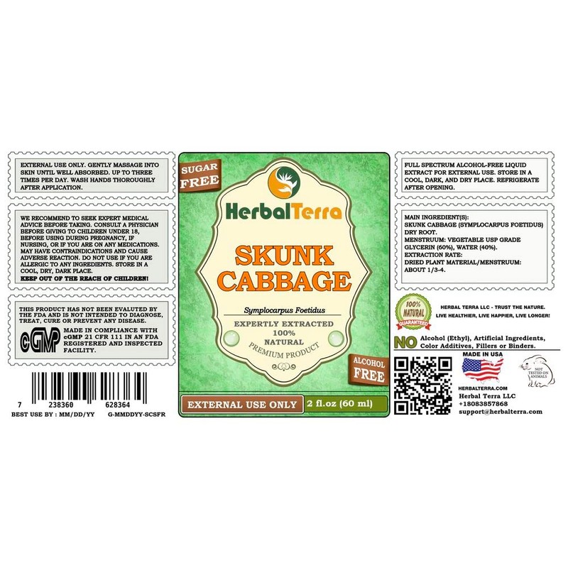 - Expertly extracted under strict quality standards and procedures from Skunk Cabbage Dried Roots. We meticulously produce our extracts according to precise standards where each herb is extracted according to the distinct characteristic of each plant!