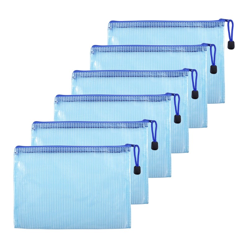 Skweawert 6 Pcs 4.72" x 6.3" A6 Sizes Mesh Zipper Pouch Bags, Mesh Bags with Zipper,Waterproof Clear document pouch for Organization Puzzles Travel, Office, Classroom Organization, A6 Blue