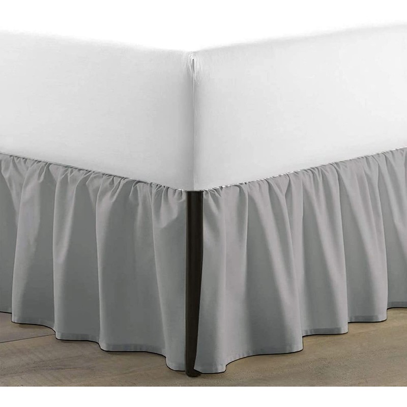 Sky Beddings - 1 Piece Gathered Split Corners Ruffled Bed Skirt Measures Queen size (60"W X 80"L) with 14 inch Drop. Which gives a stylish appearance to your bed and prevent dust.
