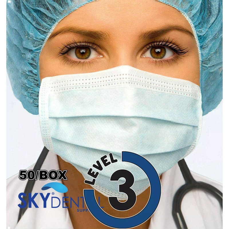 Sky Choice Surgical Face Masks Real Level 3 4Ply Mask Elastic EarLoop Blue Disposable 50/pk