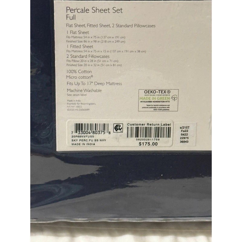 Sky New Sky 100% Cotton Percale 4 Piece Sheet Set Navy Blue Full Size
