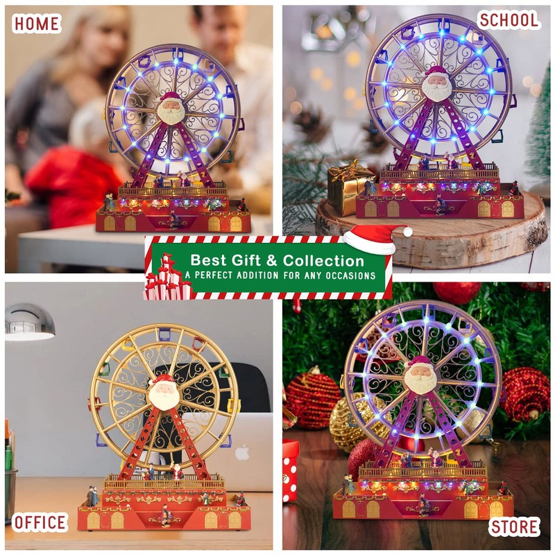 - Easy To Match——This Christmas ferris wheel with music is the perfect complement to your Christmas decorations.Moderate size is very suitable for your home,living room,bedroom,work place, desk,entrance table,mantel,or as the center of the dining table to add a festive atmosphere.