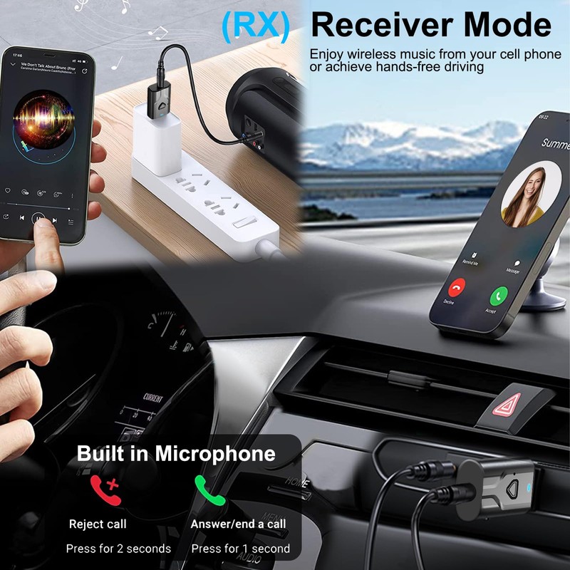 - 2 IN 1 BLUETOOTH TRANSMITTER AND RECEIVER : Built in Transmitter and Receiver mode, it enables Bluetooth function for every devices, compatible with TV, projector, computer, home stereo system, car radio, speaker, etc